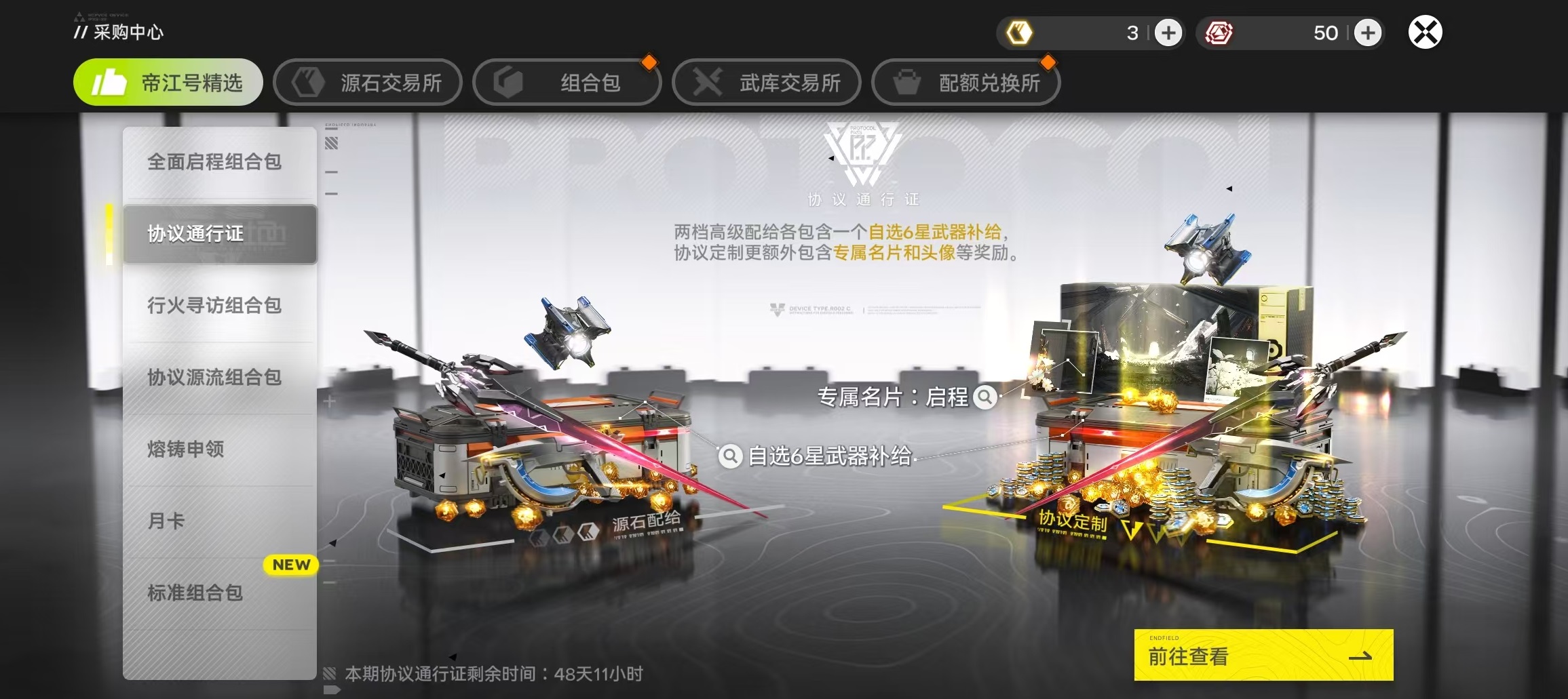 当前最具投资价值的付费模块共两项,均为长期收益型配置。其一是定价30元的月度通行证,激活后即时获得12枚源石,并解锁每日200嵌金玉及1个应急理智加强剂领取权限。按30天计算,总计可获取6000嵌金玉与12源石,单位成本极低。特别提醒:所获理智加强剂具有时效限制,请务必在有效期内使用完毕。其二是售价68元的高级通行证协议定制,购买即赠20枚源石与12000通行证经验。当进度达20级时,可领取六星自选武器箱;35级解锁专属名片;全程累计可获得2400武库配额、2个协议化武器原型及额外16枚源石。