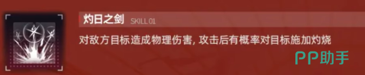 首先,朝辉的技能让她在战斗中非常具有爆发力,尤其是技能一和技能三。技能一【灼日之剑】可以对敌方目标造成物理伤害,并且攻击后有一定的几率对目标施加灼烧效果。灼烧效果配合朝辉的其他技能,能有效增加持续伤害,使敌人在短时间内承受更大的压力。