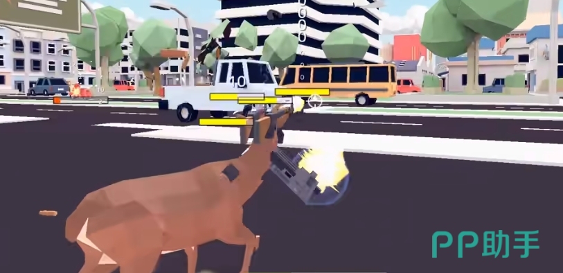 只要大家可以找到有轨电车所在的位置,在上面驾驶就可以带来更高的破坏水准,而且当玩家收集到大量武器,尤其是各种枪械后,可以尝试将这些武器放置在自己角色的头上,这包括冲锋枪、手枪等,在叠加之后就可以直接扫射周围走过的地方,但是大家作为一头鹿也并不是没有天敌的,在上面大家也需要谨慎,避免无故挑衅某些强大的动物,例如考拉和熊,因为这些动物的实力非常强大,对于新手玩家来说可能难以应对,它们简简单单就可以把鹿给撞飞。。