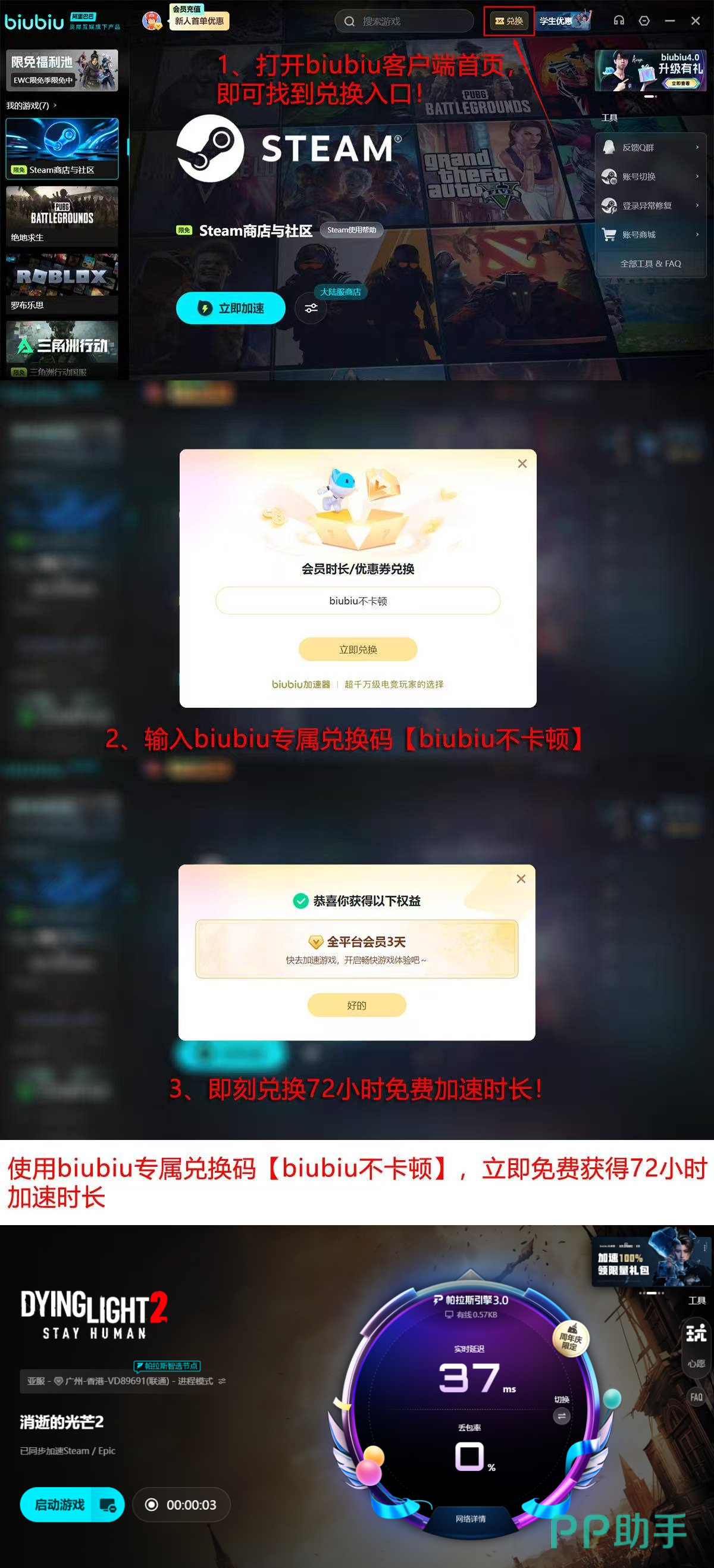 即日起至2025年1月18日(含),biubiu加速器面向全量用户开放冬季促销专属加速资源池,覆盖Steam平台主流联机游戏,支持一键启用、全程不限速。新用户完成注册并激活账户后,立即获得24小时全功能免费加速权限;叠加【biubiu不卡顿】权益,可连续畅玩72小时,总计享96小时零门槛加速服务。