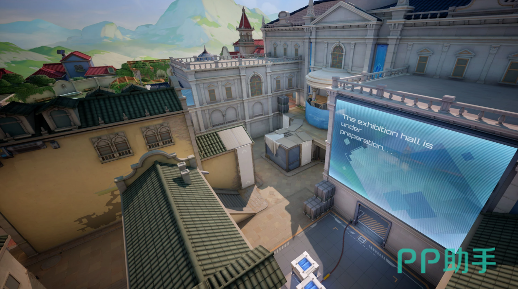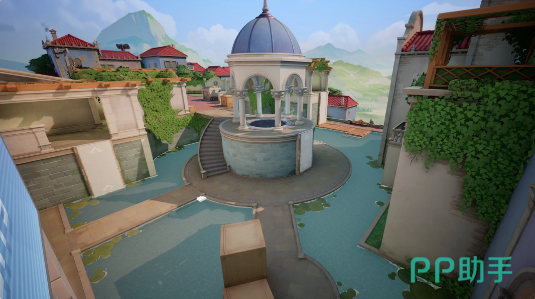 拱桥后方是一个极具价值的卡位点。站在此处只需侧身即可观察前方动态,同时占据较高的地形优势。进攻方若选择从空中突入,通常会经过此区域进行降落,此时防守者可在桥后埋伏,精准打击落地目标。此外,桥下视野还能覆盖右侧钟楼方向,防止敌人绕后偷袭,因此该位置需保持持续警戒。