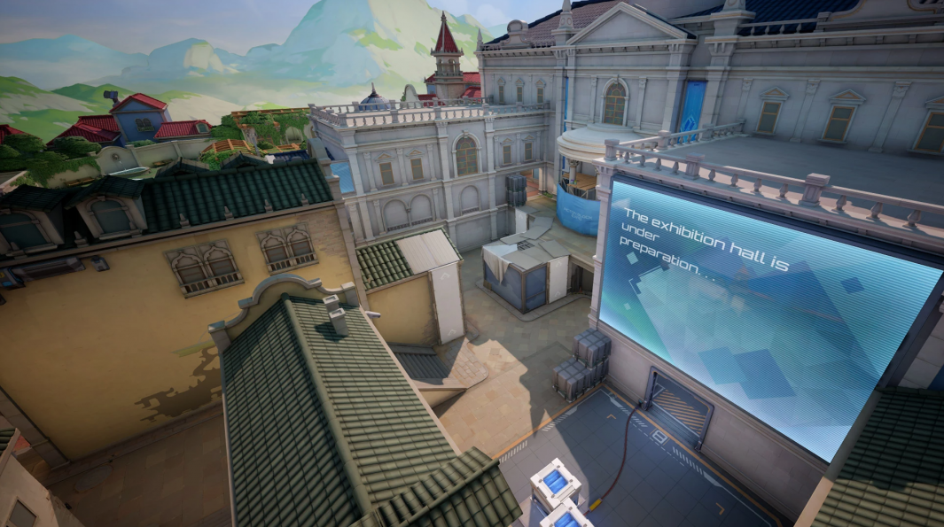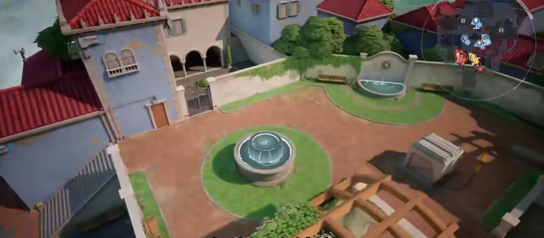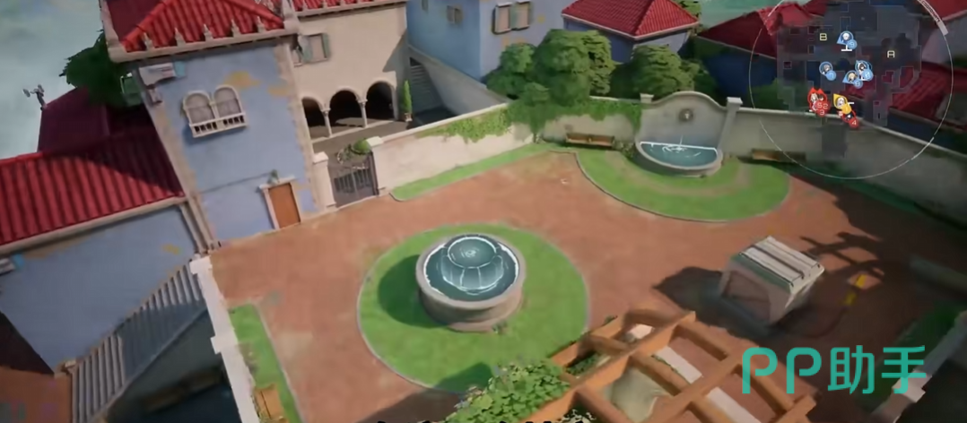 首先来看B点区域,这是整张地图中极为重要的据点之一。该区域建筑密集,屋檐与雨棚交错分布,具备飞行技能的角色可借此快速切入战场。因此,防守时必须提前预判敌方可能的空中落点,并做好视野控制。