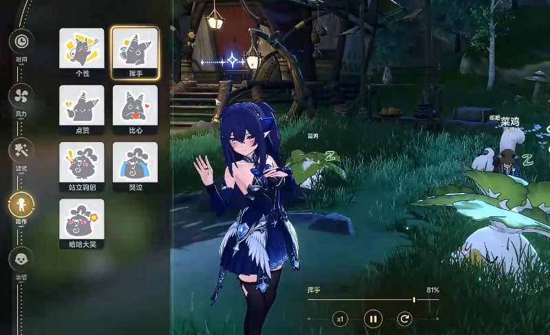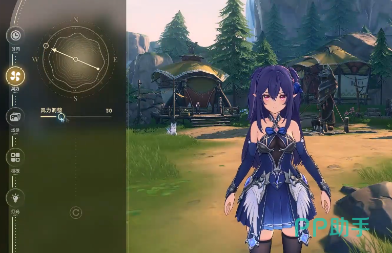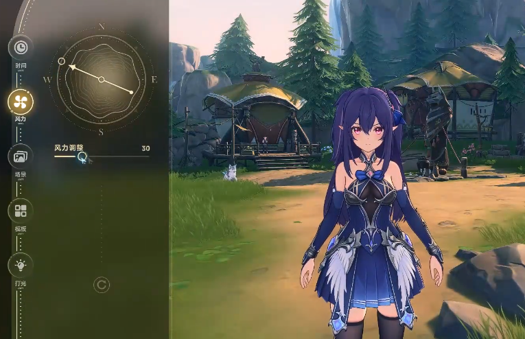 相机功能入口位于游戏主界面左上角,点击即可激活摄影模式。进入后,画面中央将呈现拟真取景框,右侧滑块用于实时调节焦距与拍摄距离;左侧功能面板集成时间控制、风力模拟等核心选项——玩家可手动切换昼夜状态,无需等待系统自然更替,即可捕捉晨曦微光或星夜流萤;风力强度亦可独立调节,影响角色发丝飘动、衣摆起伏及植被摇曳幅度,显著增强画面动态表现力。