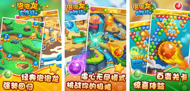 可以让大家感受到爽快的体验,能更加迅速的消除泡泡,还有许多关卡,等待着大家挑战。如果能够借助一些道具,自然就可以感受到花样消除,另外还会有全新的泡泡原画,看上去就好像是一个精美的图像一样,等待着玩家去尽情的体验。打开游戏还可以看到有许多无尽的模式,每一个都会等待着玩家去挑战,让玩家在排行榜中就能有机会站稳脚跟。