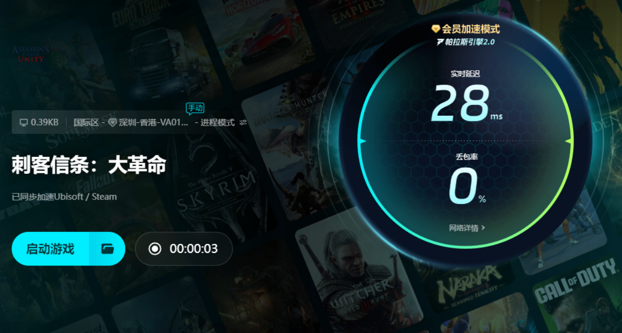 对于喜欢《刺客信条大革命》的玩家来说,网络优化不仅能解决闪退问题,还能大大提升整体游戏体验。无论你是在执行关键刺杀任务时需要迅速做出反应,还是在多人联机模式中与队友协作,稳定的网络连接都是不可或缺的。biubiu加速器采用了帕拉斯引擎2.0技术,该技术在全球数据传输优化方面表现卓越,能在各种网络环境下智能调度节点,确保数据传输始终保持高效顺畅。玩家只需在设备上下载安装biubiu加速器,然后在搜索框中输入“刺客信条大革命”,点击“一键加速”即可自动开启优化服务,无需繁琐设置,轻松享受低延迟、高稳定的网络体验。这种简便易用的操作方式,使得即便是网络基础薄弱的新手玩家,也能迅速上手,享受到流畅的游戏乐趣。