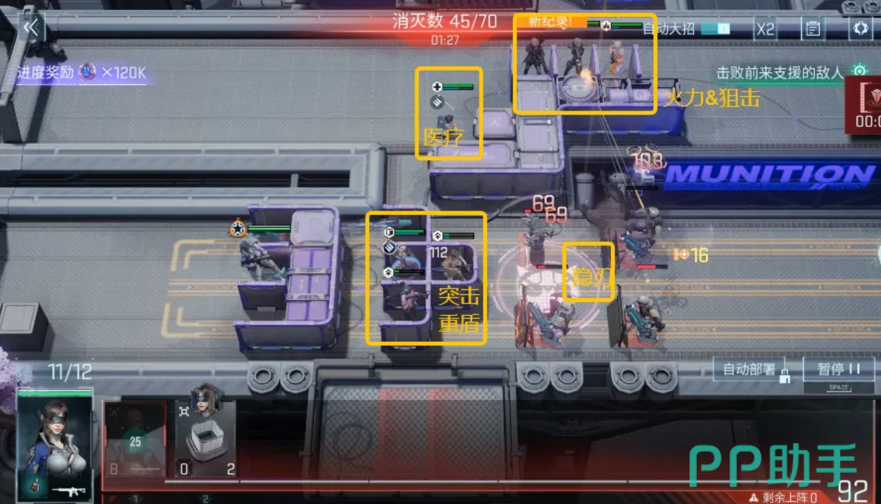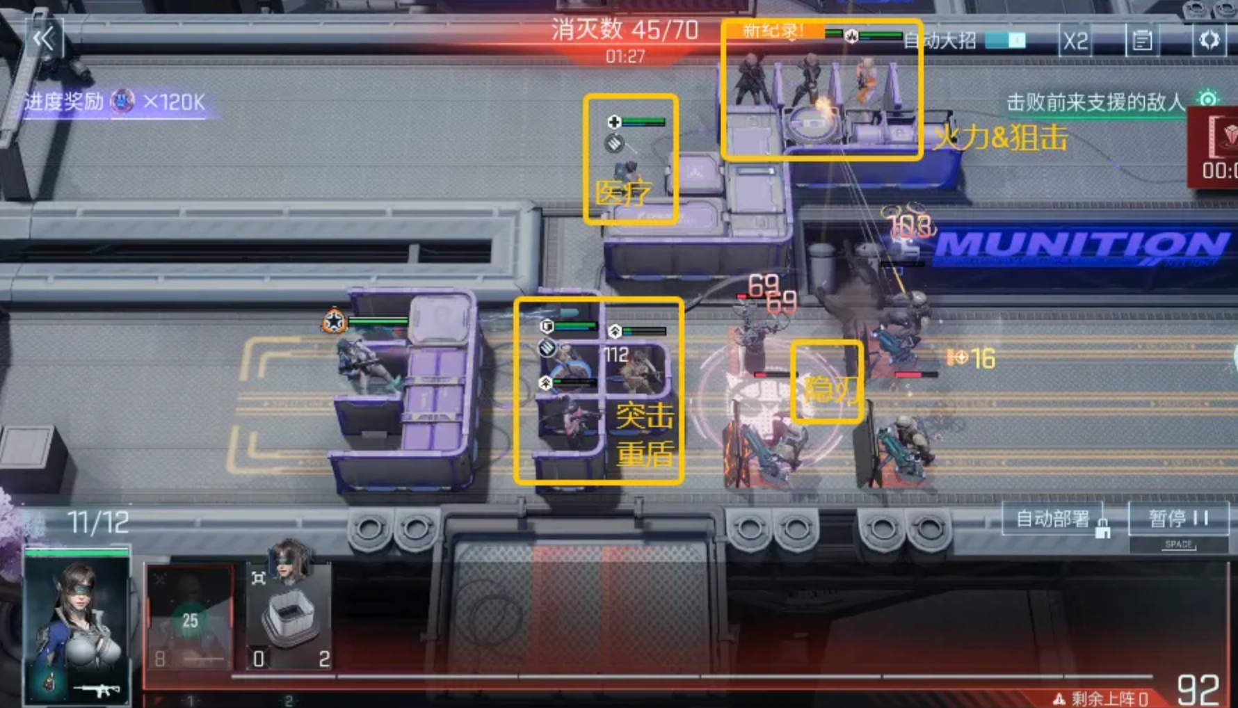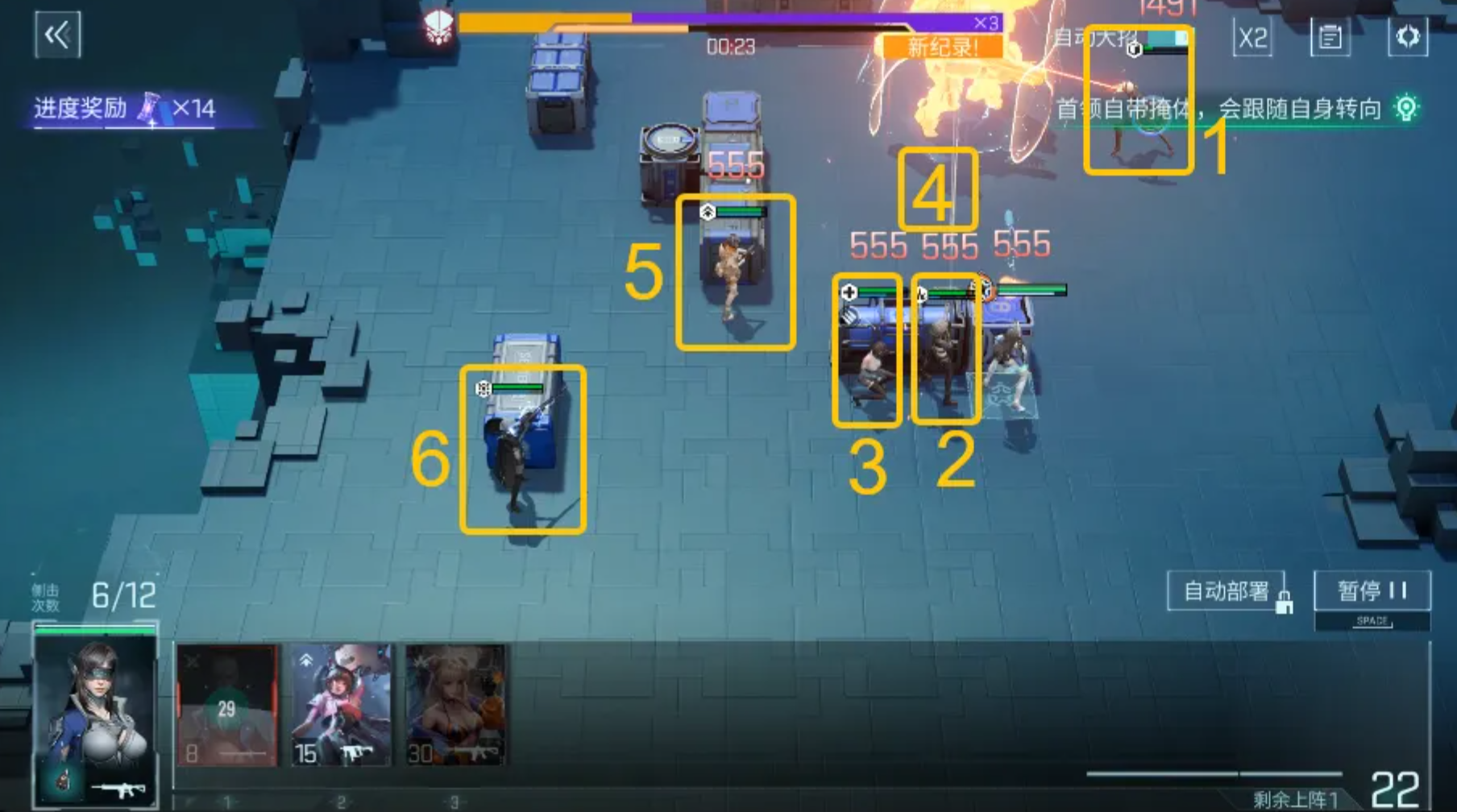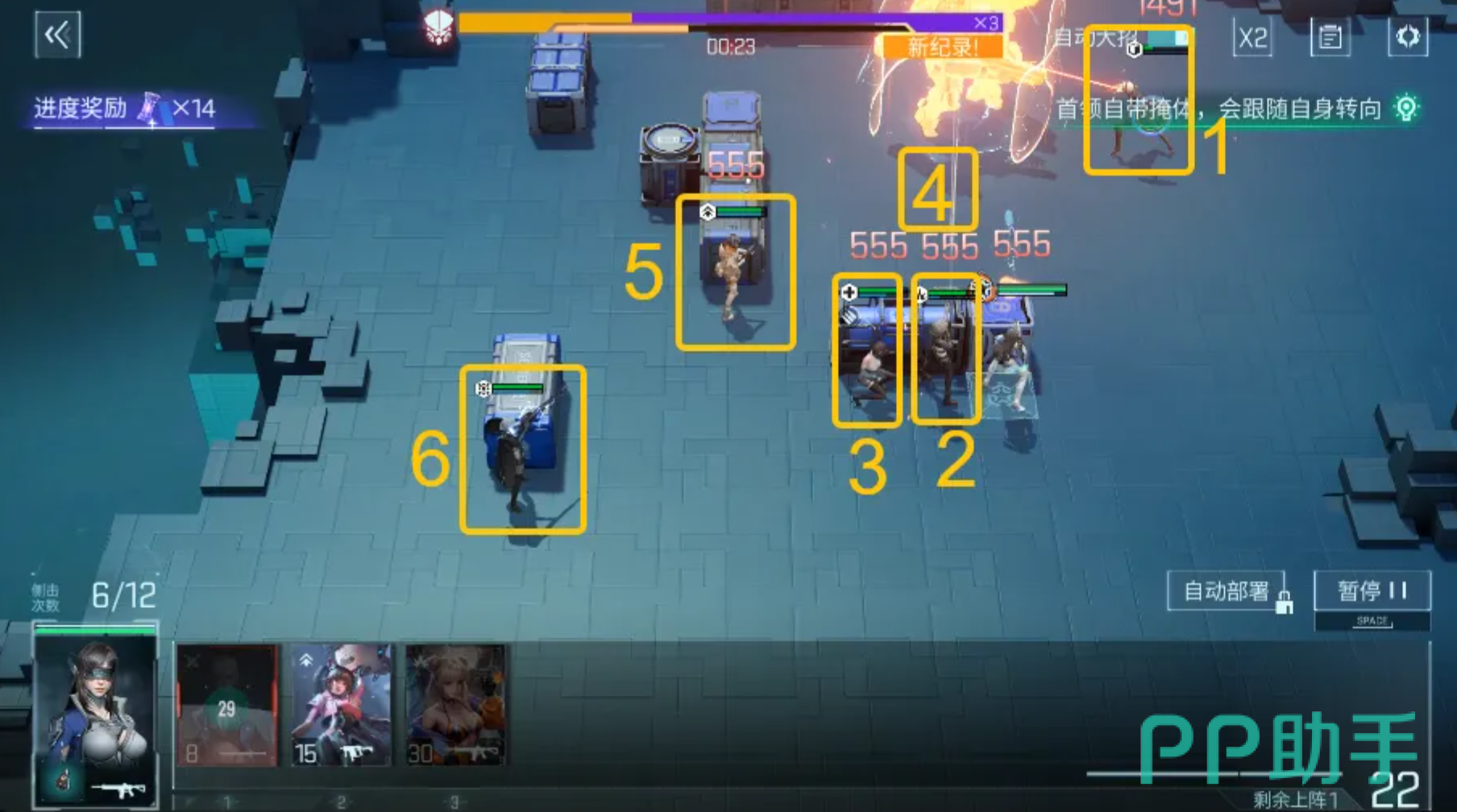 推荐起手配置:将突击位赫尔达部署于战场中央,同步在上方区域放置工程位格拉苏,二者协同触发第一阶段弱点暴露,使BOSS基础防御大幅下降;紧接着迅速在右上象限布署火力位希・西雅,完成第二层弱点压制,此时BOSS将进入强制瘫痪状态(持续约4.5秒)。该阶段务必优先清理左下方生成的敌方单位,防止其绕后干扰后排部署。待小兵清除完毕,立即预留部署费用,在BOSS即将启动下一次换区前,提前将其目标落点预设为单位部署区——切忌等待其抵达后再操作,否则将直接错过打断节奏的最佳时机。整套流程执行得当,BOSS往往尚未释放首个主动技能即已被终结。