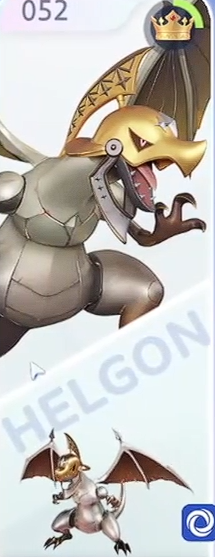 第二只为“大眼盔”,具备双线进化机制:其一进化为“盔勇士”,主攻输出方向,手持重型阔剑,释放三段式连续斩击,并可向前挥出扇形剑气,清场效率突出;其二进化为“盔卫士”,侧重战术压制,虽无高额护甲加成,但凭借高耐久与贴身缠斗技能,能有效限制敌方关键单位行动,属于半肉半输出的前排核心。