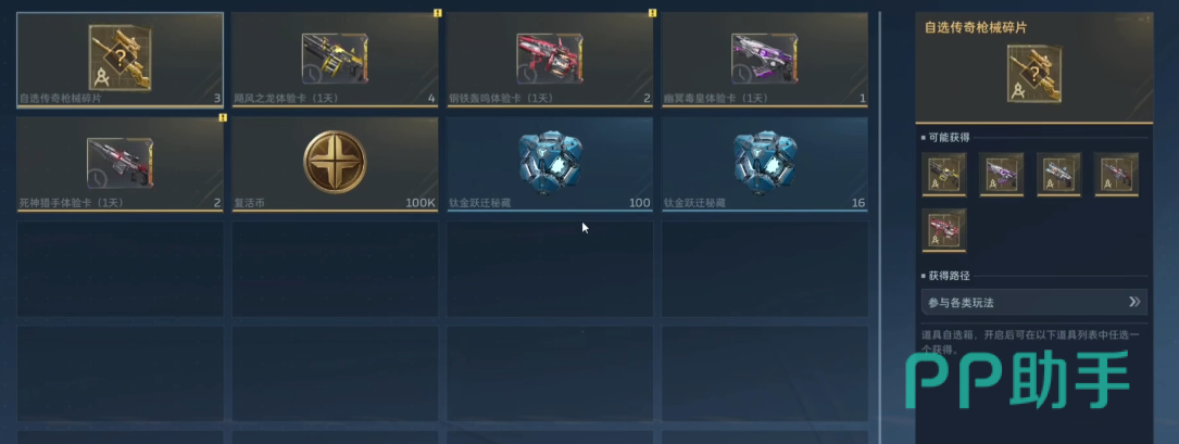 开启传说钛金跃迁秘藏后,可随机获得金色或紫色品质武器,涵盖远程主武器、副武器及近战装备三大类型。本次版本“钢铁起源”新增多款高适配性金色武器与紫色武器,部分近战武器亦属首次实装。统计数据显示,开启时获取紫色武器的概率相对稳定,而金色武器虽属小概率事件,但存在一定基础保底机制;另设1日体验卡形式的金色武器试用权限,降低高价值装备的获取门槛。若未命中武器本体,则可能获得武器挂件类装饰道具,用于外观个性化定制。