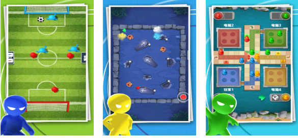 多人竞技场这款互动竞技作品最多支持四人一起竞赛,背景色彩明亮还具有灵动视觉效果,俯视角进行的3-4人竞技玩法耐玩性很强,操作异常轻松能快速感受竞技的状态,多人互动的游戏理念增添了交互性和竞技性,像飞行棋和足球等多人PK模式等待大家挑战,操作系统更加简单灵活可快速完成对战比拼。