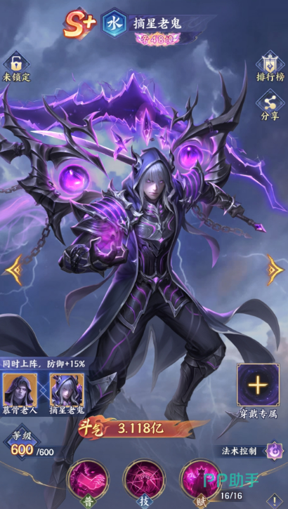 在《斗破苍穹》手游中,摘星老鬼是一张水属性S+品质的高阶斗者卡牌。其定位鲜明,核心价值集中于中后期——尤其适配控制流阵容。该角色并非前期发力型斗者,而是随着星级提升与天赋解锁,逐步展现出强大的团队压制力与战术延展性。若计划将摘星老鬼作为主力培养,需重点围绕其群体伤害输出能力构建体系,其星级每提升一级