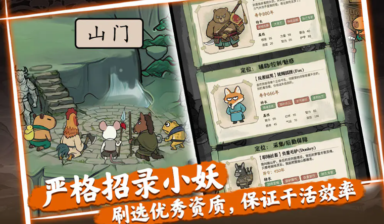 区别于传统西游题材的取经叙事,本作聚焦“妖界组织运营”这一独特视角。没有师徒四人的高光旅程,只有真实的人员调度难题:小妖资质参差、性格迥异、寿元有限。玩家需依据个体特性动态配置岗位——例如将精力旺盛的“卷王型”安排至矿洞持续作业,将偏好清闲的“摸鱼型”调岗至山门值守或送入炼丹车间接受再培训,实现人岗精准适配。