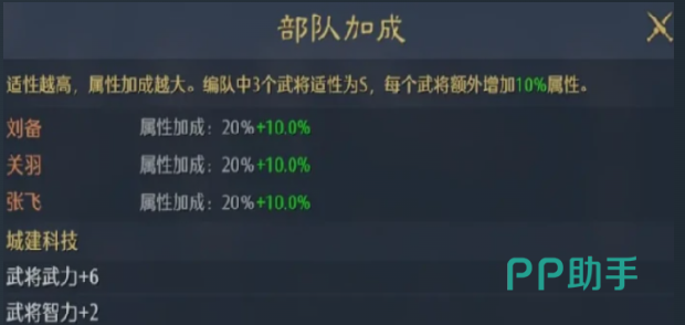 最大化发挥缘分系统效能,需转变传统配将思路:不应仅聚焦单体战力数值,而应优先识别武将间是否存在可激活的历史组合。推荐优先选用高史实契合度的经典搭配,例如庞统与诸葛亮(卧龙凤雏)、关羽与张飞(桃园结义),此类组合不仅触发效率更高,加成幅度亦优于随机组合。此外,编队中若三名武将兵种适性均达S级,还可额外获得10%全属性加成,进一步放大缘分收益。