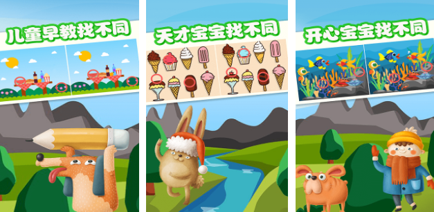 游戏会有两幅不一样的图案,但这两个图案的差距不是特别的明显。小玩家就需要去仔细的辨别,然后找出这两个图画之间的不同之处。会有效锻炼孩子的细节感知能力还有观察力。游戏有丰富的内容,鲜艳的色彩,可以吸引孩子的注意力。让孩子在寻找不同的过程中,还能慢慢的去培养细心以及耐心。