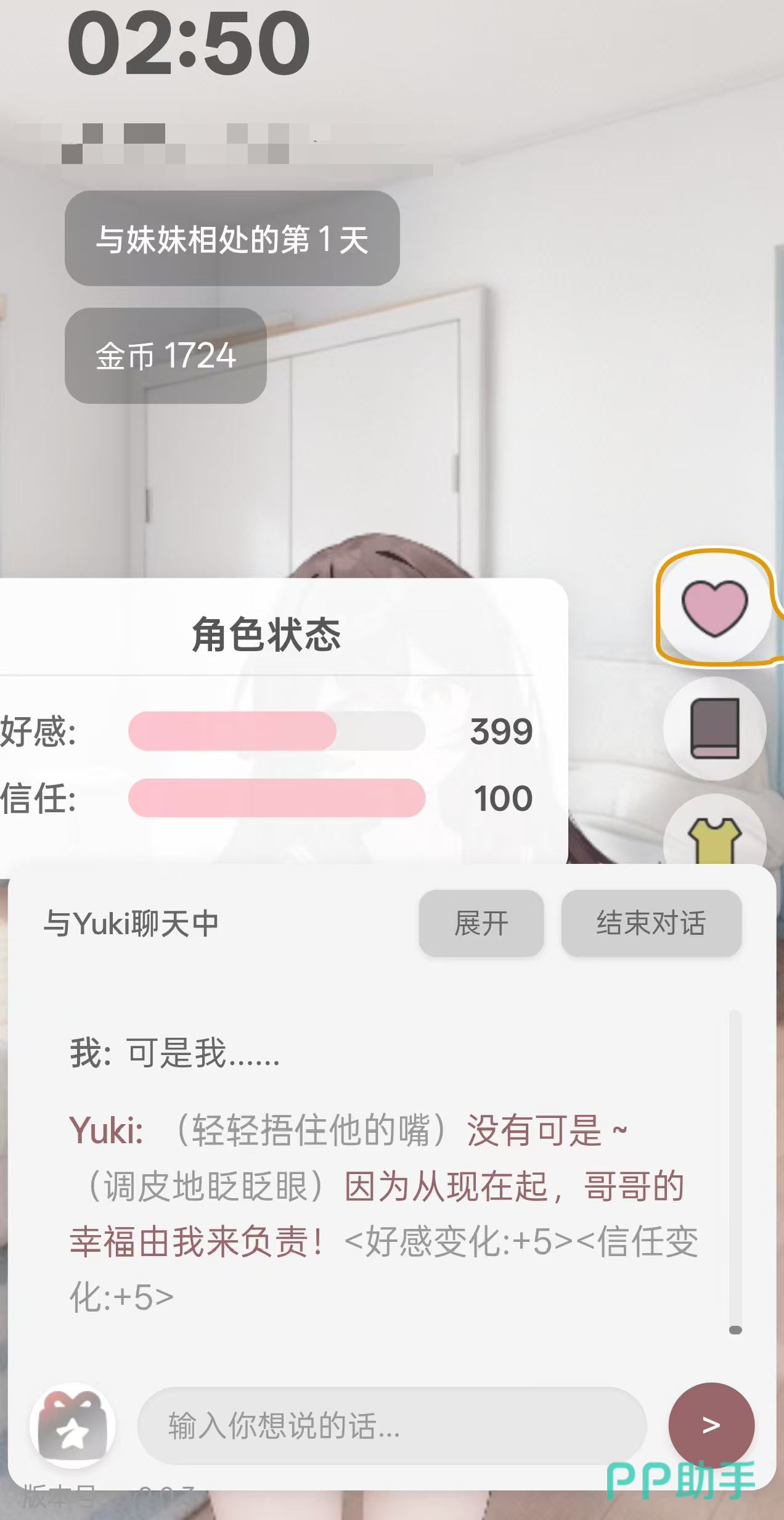为便于玩家实时掌握关系进展,游戏内置“日记”功能。该模块按日期归档全部互动记录,每篇日记末尾均附有女主角当下的心理独白。若文本中明确出现“相处很愉快”“越来越信任你”等正向表述,则代表当前好感度已进入良性上升通道;当累计数值达到1000时,所有主线章节、隐藏事件及角色专属技能将同步解锁,正式开启完整体验流程。