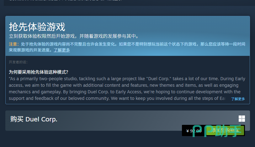需要特别说明的是,该价格对应的是“抢先体验版”,并非最终正式发售版本。根据目前官方公开信息及行业惯例推测,待游戏完成全部开发内容并上线正式版后,预计售价区间将在198至298元之间。现阶段仅提供单一数字版本,尚未推出豪华版、典藏版等差异化版本选项。此外,《DuelCorp》当前仅登陆Steam平台,未同步上线其他PC数字发行渠道。