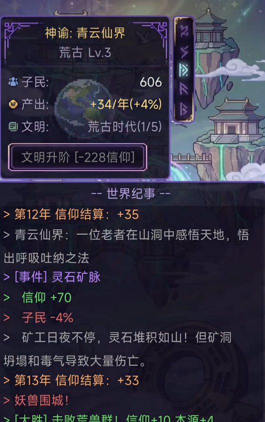 在游戏中,你将从初始神格起步,通过开天辟地、设定基础法则、孕育洞天世界等核心操作,亲手塑造专属神国雏形。随后可吸纳信仰、敕封神职、册立神使,逐步扩展神权覆盖范围。信徒数量、信仰纯度、神域稳定度等维度共同构成动态成长模型,推动玩家由初代神明稳步迈向万界至高之位。