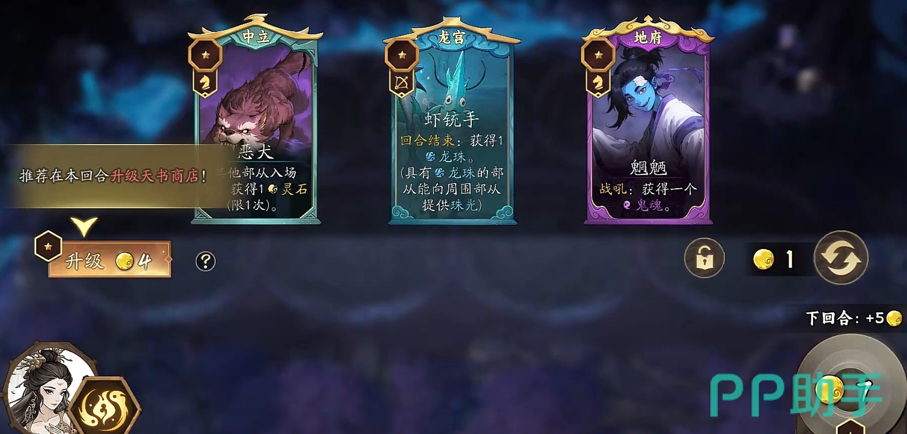 游戏采用双阶段回合制结构:每轮分为“天书阶段”与“战斗阶段”。在天书阶段,玩家可消耗资源招募、升级或替换部从,构建专属阵容;进入战斗阶段后,所有部从将自动布阵交锋,胜负由双方存活单位数量与战力协同决定。开局时选定的幻神不仅赋予初始被动效果,更将影响后续羁绊触发逻辑与流派成型路径,是整套策略体系的起点。