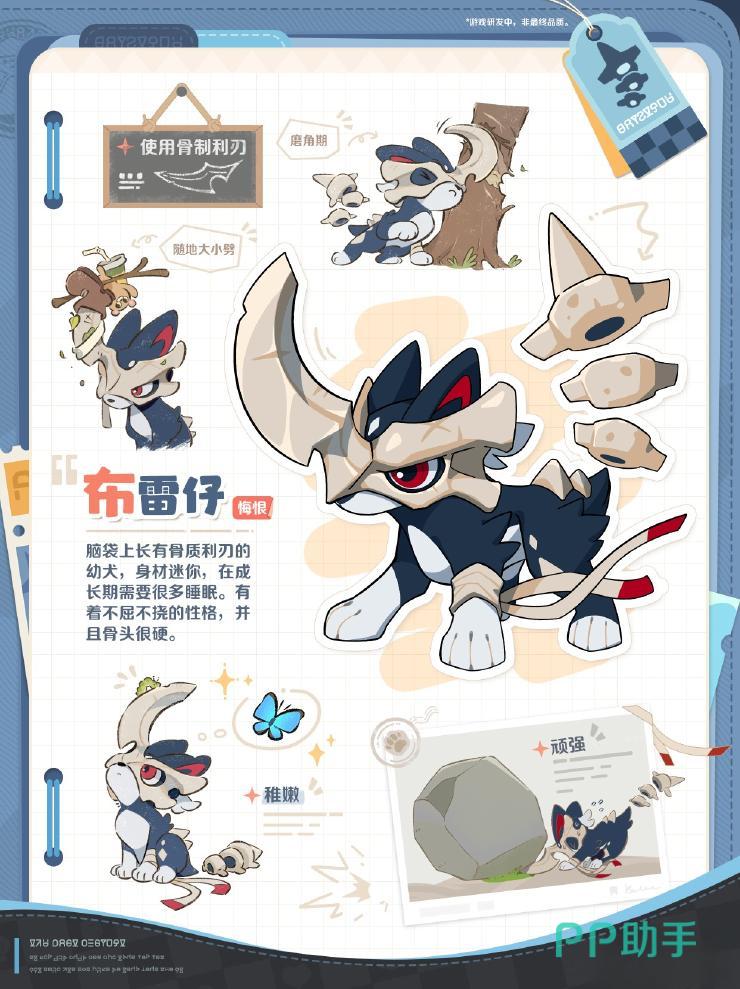布雷仔是一种幼犬形态的精灵,头部生长着类似骨质利剑的结构,平时喜欢借助路灯或墙壁磨砺这把“骨刀”,以保持锋利。虽然体型娇小,但骨骼坚硬,展现出顽强不屈的精神特质。它以骨刺为主要攻击手段,战斗风格坚韧且富有侵略性。其力量源于悔恨情绪,拥有“小脾气”这一特殊特性,身高为99厘米,能量上限为52点能焦。