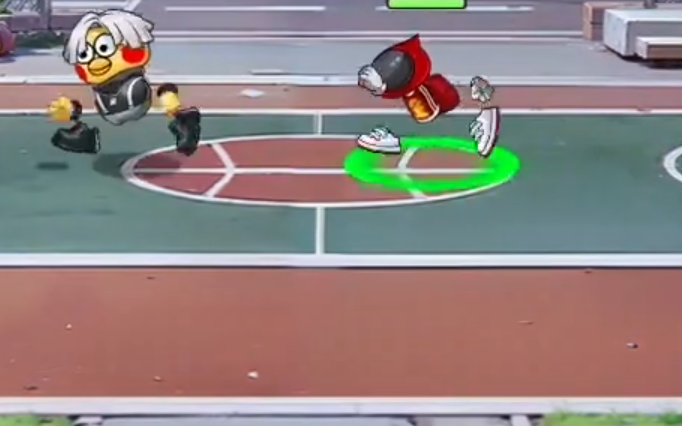 攻击键的作用多样。单次点击可使角色进入运球状态;若靠近敌方单位并连续点击,则会发动连续进攻,成功命中后可击倒对手并夺走其手中的球。在空中且持有篮球的情况下,点击攻击键将触发空中截击。此外,当角色处于控球状态并接近篮筐时,攻击键会自动变为“投”按钮,此时即可执行投篮动作,若无防守干扰,投篮将顺利完成。