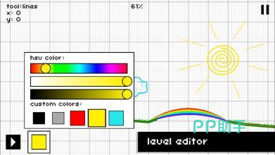 将竞速与创作巧妙结合,把每一条赛道都变成玩家亲手绘制的战场。游戏摒弃传统固定轨道的设定,从起点到终点全由玩家自由描线,车轮所经之处正是笔尖划过的路径。角色在画线构建的崎岖地形中翻滚前行,物理碰撞带来的失衡感制造出意料之外的惊险瞬间,轻微的倾斜或角度变化都可能导致翻车或腾空。