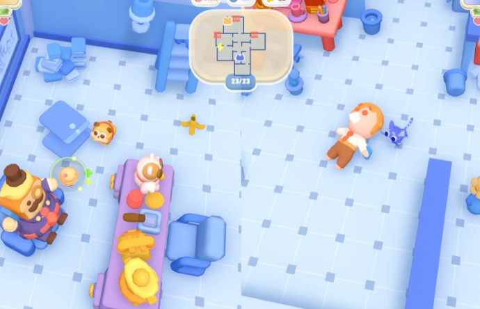 该游戏支持多人在线协作对战,最多可容纳三名玩家共同扮演宠物协同拆解家具,一名玩家担任主人进行反制。团队合作中可通过战术分工提高效率,例如利用一只宠物牵制主人注意力,其余两只集中拆除关键区域。若缺少真人队友,系统提供AI辅助功能,AI会依据当前局势自动配合行动。此外,街机模式包含投掷训练场和萌宠跑酷等非对抗性玩法,前者用于锻炼道具投掷精度,后者要求在规定时限内穿越障碍前进,整体节奏轻松,适合休闲体验。