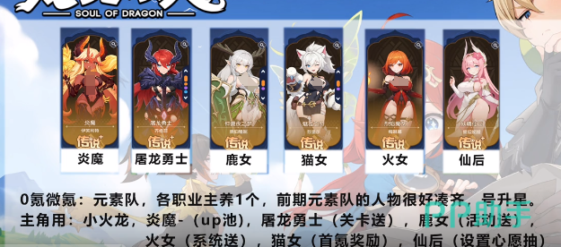 在战斗的过程中就可以选择炎魔与屠龙勇士、鹿女、猫女、火女、仙后组成阵容,在如此搭配之后,就可以形成一个比较出色的优势。屠龙勇士在游戏里面本身就会拥有较强的物理性输出,可以给敌人造成额外的伤害加成。鹿女在游戏里面还可以施展治愈法术,让队友迅速的恢复生命值。