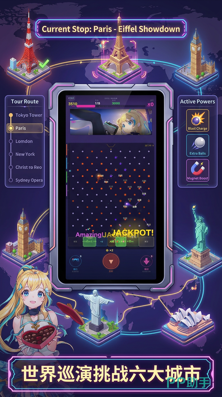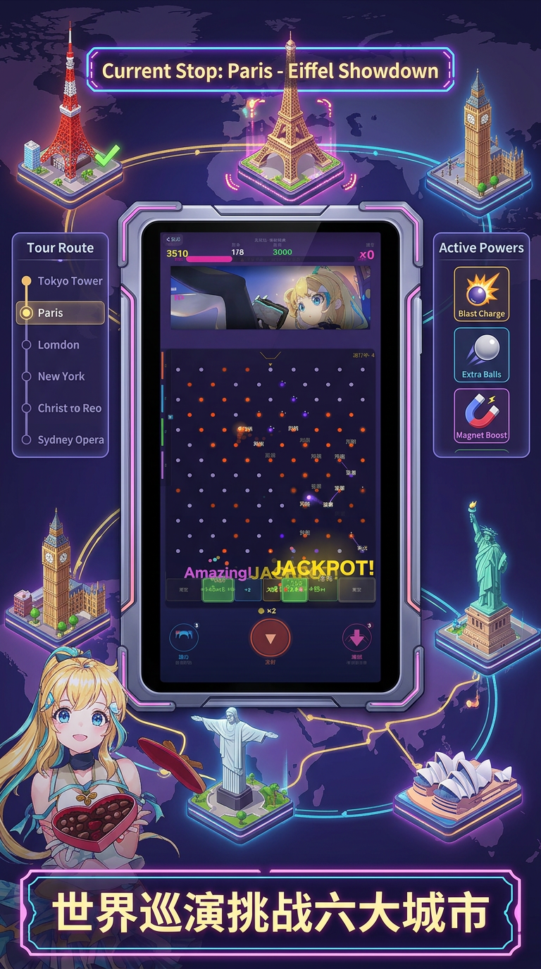 《弹珠舞姬嗒啦啦:世界巡演》突破传统音游框架,将弹珠物理引擎与音乐节奏算法深度融合,构建出具备高复玩价值与强个性表达空间的新形态玩法。即刻预约,用指尖掌控弹道轨迹,以节奏定义舞台传奇。