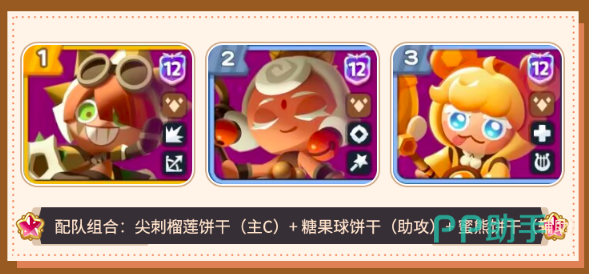 土系爆发流阵容推荐:尖刺榴莲、糖果球、蜜熊饼干。本体系强调“叠加增伤+区域压制+生存保障”的协同逻辑,特别适用于群怪密集、节奏紧凑的副本地形。尖刺榴莲作为核心输出,依赖层数叠加触发范围爆炸伤害,兼具清场与压制双重效能;糖果球负责构建持续生效的攻击区域,并附带降低目标防御的被动效果,大幅提升全队实际伤害转化率;蜜熊饼干提供群体护盾与承伤缓冲,在关键节点吸收高额伤害,为输出循环争取稳定释放空间。