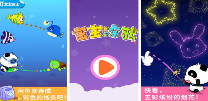 玩家需将散落的小鱼通过线条连接,最终形成一幅色彩斑斓的海洋画卷,既锻炼了手眼协调能力,又培养了审美意识。游戏还提供了“烟花绽放”与“自由绘画”等创意模块。在“烟花绽放”中,孩子们可通过点击屏幕释放绚丽的烟花,感受色彩与光影的奇妙变化;而在“自由绘画”模式下,他们可以使用多种画笔工具,随心所欲地创作属于自己的艺术作品。