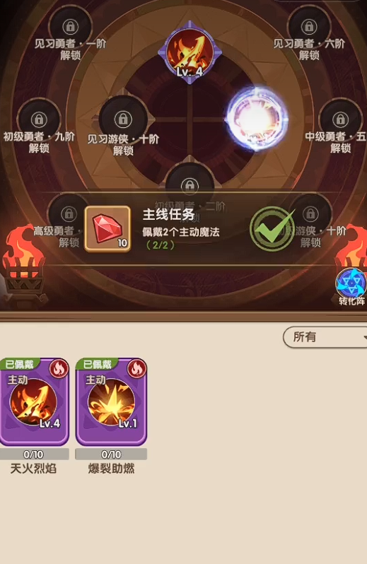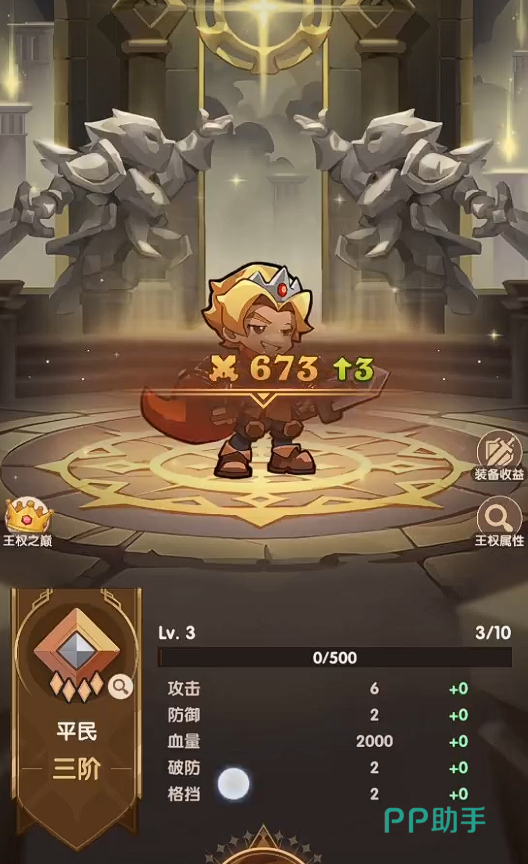 角色本体培养具备绝对优先级。经验药水、突破石等成长材料应全额投入主角升级与段位突破——初始段位为平民,随等级提升依次解锁骑士、王国等更高阶身份,每晋升一级均可激活额外属性加成与功能权限,属于不可逆的战力跃迁路径。