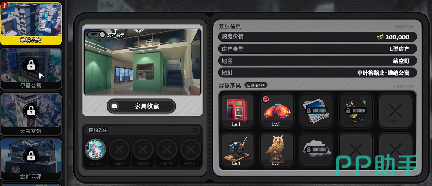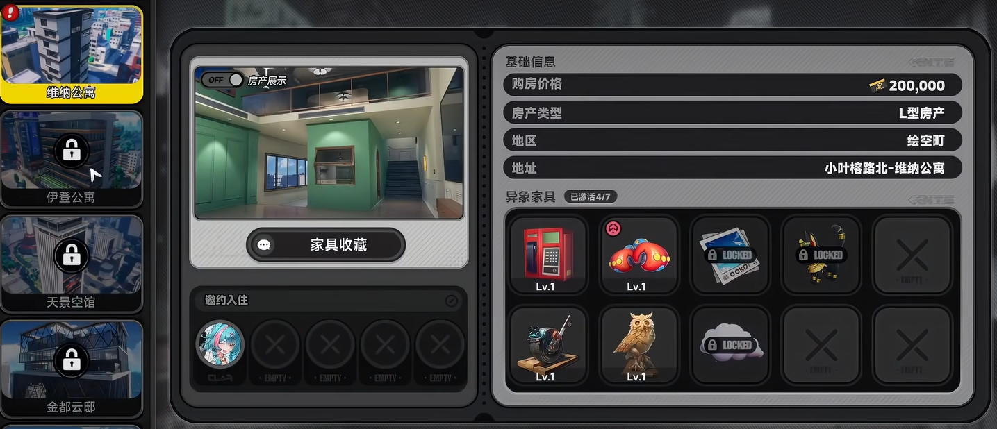 房产系统构成都市大亨另一核心支柱。房屋按价格划分为多个档位,基础小户型起售价为20万方斯,顶级豪华别墅标价800万方斯。不同房产除售价差异外,功能性亦逐级增强:小户型仅支持1名角色入住;别墅则可容纳5名角色协同生活,并内置专属隐藏副本。该副本需消耗活力值进入,通关后可稳定获取方斯奖励。