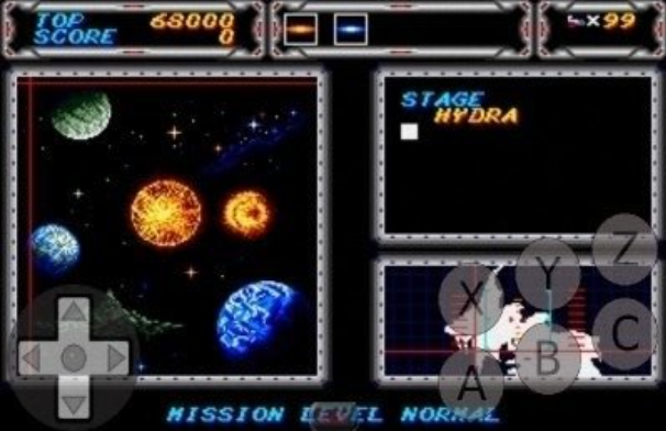 这是款从MD平台上移植的超经典飞行射击游戏,按键设定复杂还具备酷炫粒子画面,你将操控宇宙穿梭战机在宇宙中自由酣战,轻像素展现的多图层系统为8090后玩家提供视觉震撼,画质方面临场感极强给人真实驾驭战斗机的感觉,整体节奏欢快能快速消灭敌人进行闯关,这款品质精良的世嘉机移植神作值得大家品味。