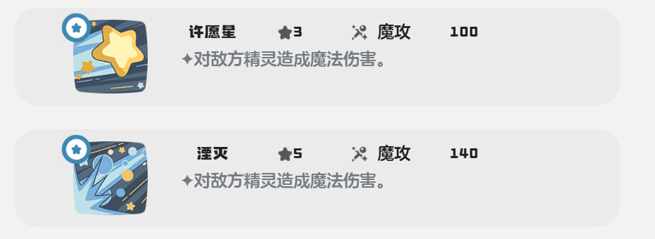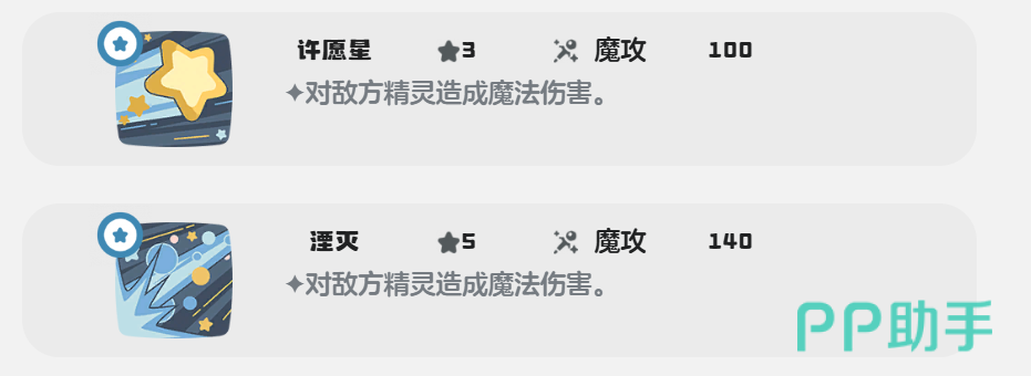 魔攻的话可选择的技能为湮灭+魔法增效+n恩娘炮+许愿星这一套组合。这一套组合种可以把许愿星堪称时单体攻击技能,先用魔法增效提高自身80%的魔攻的效果,用许愿星对单体进行100点的猛烈的攻击,随后能量炮补伤害能量炮使用后能连续进行2次攻击,最后用湮灭来一波收割就可以了。