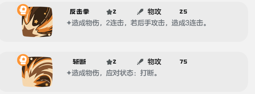 2连击技能,若是当成后手进行攻击还能打出3连击。