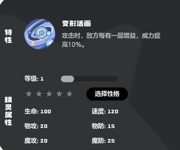 画间沉铁兽的特性非常的重要,它的特性名为变形活画,战斗时,当敌人身上附加了增益的时候,画间沉铁兽的攻击威力就会提升10%,每叠加一层增益,威力就会增强10哦。