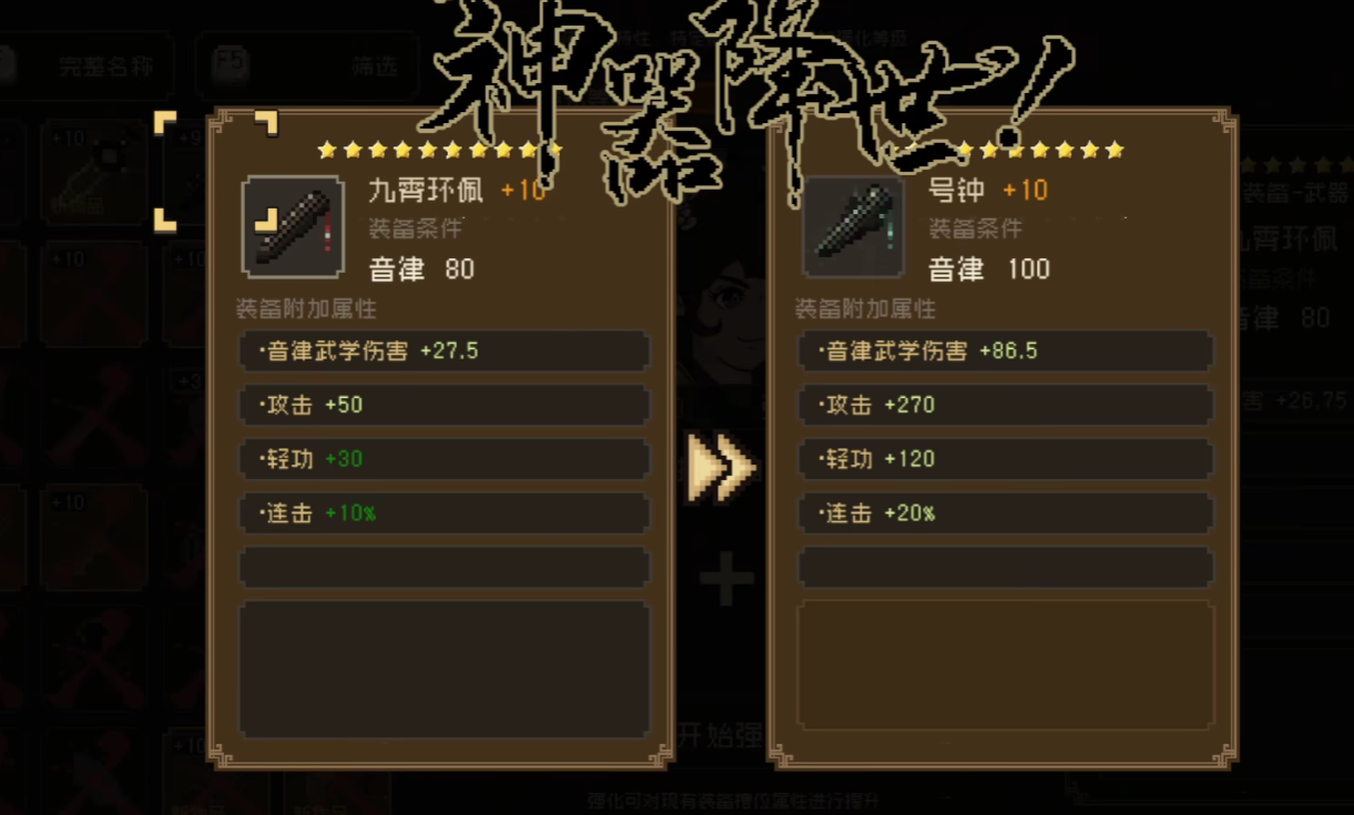 上面这些内容就是本次小编给大家专门带来的,大江湖之苍龙与白鸟神器怎么获得的全部攻略解答了,在游戏内,玩家每次进行一次装备的升级,都有概率将装备培养成为神器,希望看完这次内容的小伙伴们,可以实际进到游戏内体验一下哦~