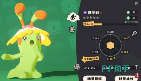 从属性克制角度来看,作为草系精灵,奇丽花对土系和水系对手具备天然优势,能在对战中形成有效压制。但需注意的是,它对火系和飞行系技能较为脆弱,容易受到高额伤害。基础面板方面,奇丽花的物攻与生命值表现突出,但速度偏慢,物理防御也相对薄弱。不过这些短板会随着等级成长逐步改善。最关键的核心机制在于能量吸收系统——每获取一点能量即可恢复自身5%的最大生命值,这一特性使其具备极强的续航能力,堪称“永动”之名的来源。