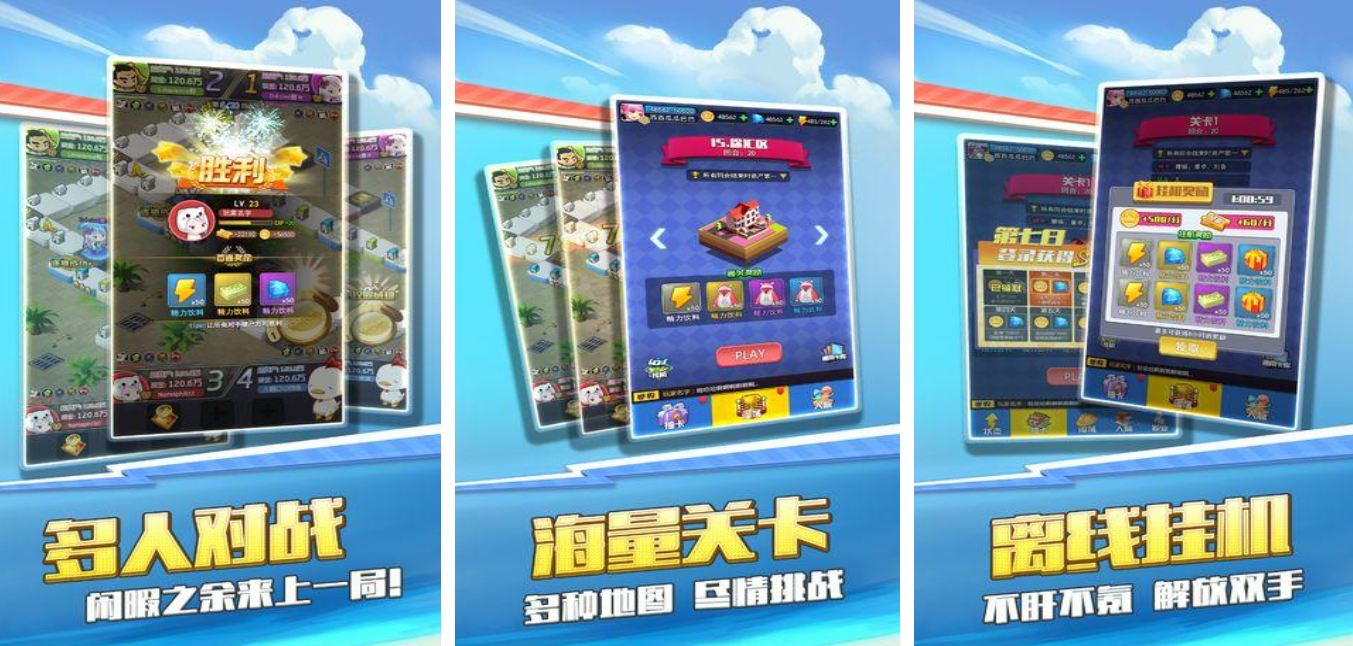在经典的地产经营玩法上,融入了全新的卡牌对决、建筑升级等趣味元素,为玩家带来耳目一新的体验。游戏中提供了多个风格迥异的角色,每位角色都拥有专属的技能和厉害的武器,为策略选择增添了更多可能性。此外,规则简单易懂,新手也能快速上手,快来加入这场充满惊喜的冒险吧。