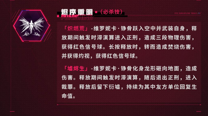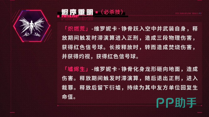 她的队长技能“诛恶涤罪”具备显著的团队辅助效果,开启后可提升全队攻击力,同时增强焚烧伤害与物理输出,是组队配置中不可忽视的战略选择。另一项关键技能“焌恶苏生”兼具伤害与治疗功能,在危急时刻能够为队友恢复生命值,提升战场生存能力。此外,职业技能还赋予切换入场的角色额外攻击力加成,并将其属性视为火属性,进一步强化队伍协同作战效率。