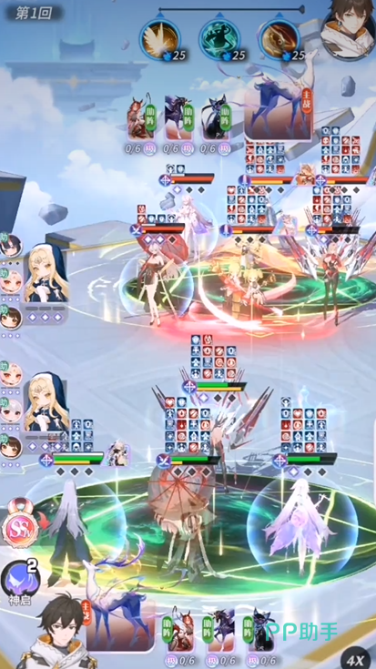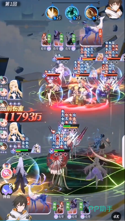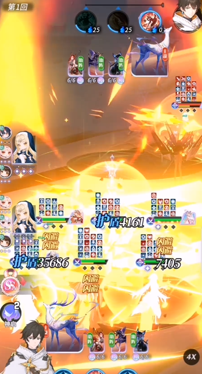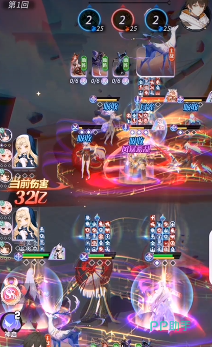 主动技「黯能汇聚」是弥弥战斗节奏的核心引擎。消耗3点精灵值即可发动,效果覆盖攻防两端:对全体敌人造成200%攻击力的伤害;使敌方生命值百分比最高的3名单位流失相当于其生命上限15%的数值(单体最高不超过300%攻击力);为全体敌人附加3层【魔能束缚】;同时恢复我方全体50%生命上限的生命值,溢出治疗量自动转化为护盾。这一连串操作兼顾压制、控场与团队回血,在多段战斗中能有效扭转局势。