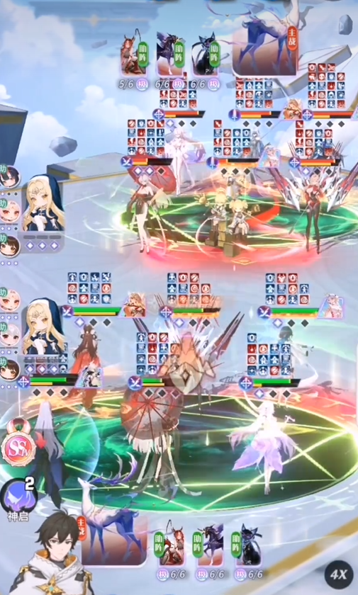 助战技「长夜无光」随星级提升逐步解锁强化效果,从UR至UR★★★★★共五阶。最终形态下,每累计触发2次【黯渊庇护】,弥弥即可无消耗释放1次天极技「魔界降临」,每回合限1次。结合其主动技频繁触发免死的特性,高星状态下天极技释放频次将明显提升,形成强力的资源复用闭环。