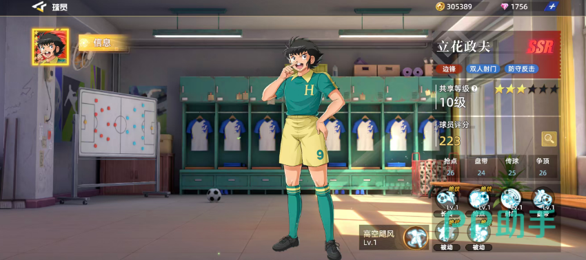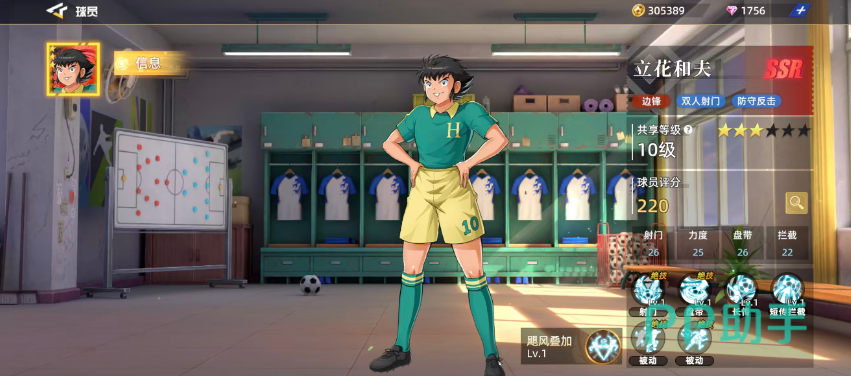首推球员为立花和夫,他不仅胜任前锋职责,也能灵活切换至边锋位置。作为一张红卡球员,他在实战中能发动双人射门与防守反击战术,整体能力评分表现出色。随着等级提升,其两个被动技能可逐步激活,尤其在未被对手抢断的情况下,通过技能释放增强射门威力,从而为队伍带来更高的输出倍率加成。值得一提的是,与立花和夫能力相近的还有另一位球员——立花政夫。
