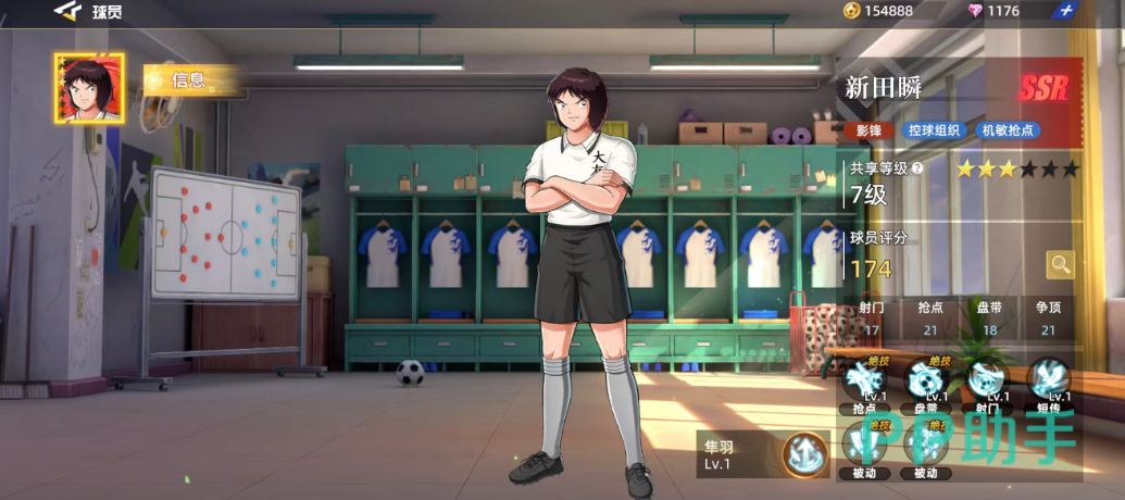 最后推荐的前锋球员是新田瞬。作为红卡单位,他不仅能胜任前锋职责,还可充当影锋角色。在六维图中,其抢球能力尤为突出,后期可通过特定技能进一步强化。当他发动威力约为115%的射门时,能够根据招式特性触发百分比加成效果。此机制可与短传配合形成连招体系,极大丰富进攻手段与战术选择。