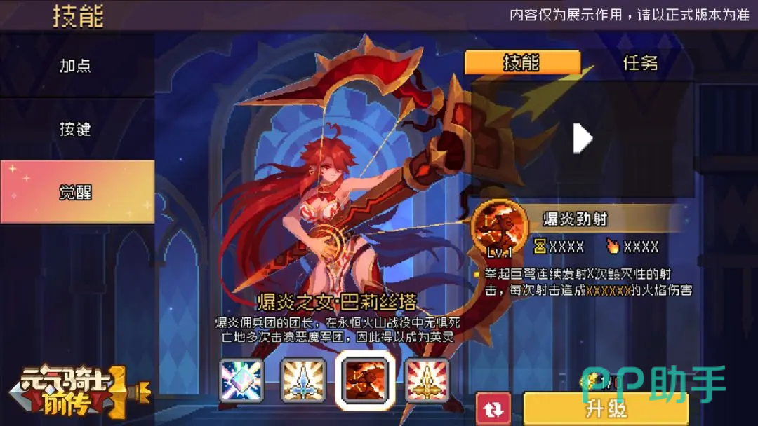 玩家可在任务列表中随时查看当前觉醒任务的完成进度,这些任务设计灵活,可在日常升级或刷图过程中顺带完成,无需额外投入时间与资源。其中,火焰射手的专属觉醒技名为“爆炎劲射”,释放时角色将召唤巨弩,连续发射多轮高威力火焰箭矢,每次命中均造成大量火焰属性伤害。