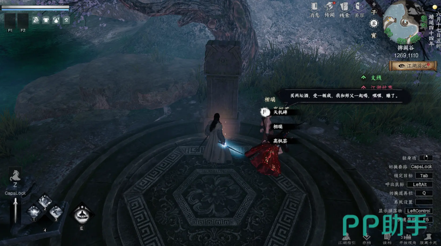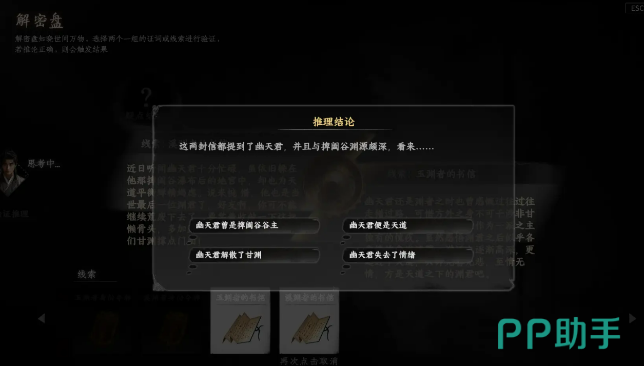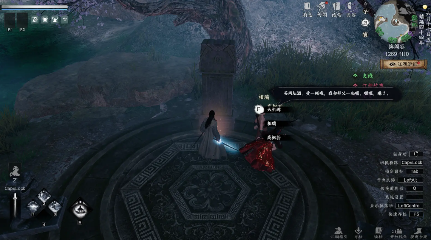 随后,前往1269.1110与天机碑产生交互,接着进入1261.1094的地宫区域,在其中探索并战胜游逸,从而获得关键证词。之后前往116.1100触发新剧情,继续移动至98.1066开启宝箱,取出其中的手记资料。紧接着在123.1044与于老交谈,完成指定的钓鱼小游戏,并通过推理串联起杜鹃与东方之间的关联线索。