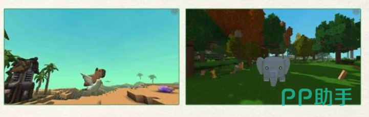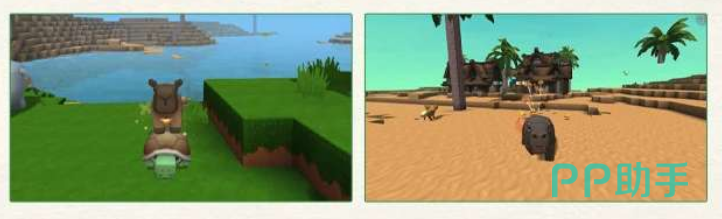 驯服这些动物之后,还有一些极具创意的变身玩法等你来体验。当你手持食物诱导动物靠近并成功驯服它们时,你可以获得动物技能,甚至可以化身为这些动物来感受它们的生活。比如,变身成卡皮巴拉后,你可以骑乘任何物体,这绝对是一个非常特别的能力。变身为长颈鹿的话,你可以轻松地原地起飞,飞跃周围的障碍,简直爽到不行。而变身成河马,你则能获得飞翔攻击的技能,让战斗更具趣味性。每一种变身都让你体验到与众不同的游戏乐趣。