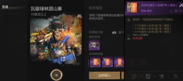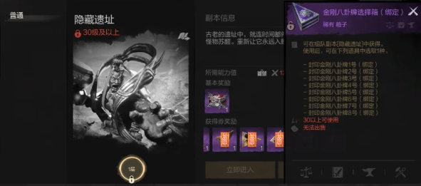 10~45级以内,玩家通过组队的方式就能得到一些比较稀有的八卦牌,例如金刚八卦牌还有仇满天八卦。可以通过组队的方式来到山寨副本能有机会掉落,除满天八卦牌。也可以选择来到隐藏的遗址副本就能有机会获得金刚八卦牌。总之每一个不同的副本所能获取的八卦牌都会有所区别。