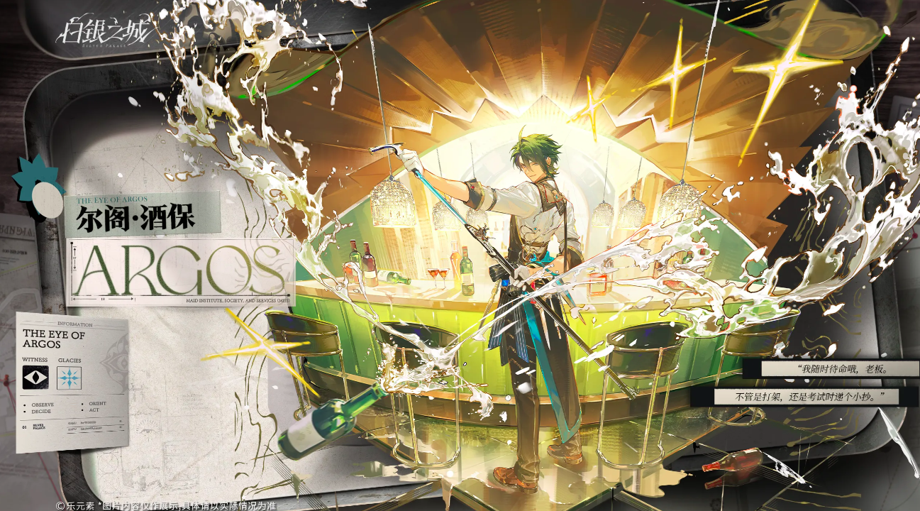 第三位角色为尔阁酒保,表面是尔阁酒馆日常运营者,实则具备极强的战场调控能力。他随身携带剑与枪,但更倾向以调酒技艺完成战术协同——作为团队辅助担当,其技能可为全体队友提供稳定续航支持。当队伍陷入疲态时,一杯特调饮品不仅能恢复生命值,更能同步缓解战斗压力,体现独特的人文战术价值。