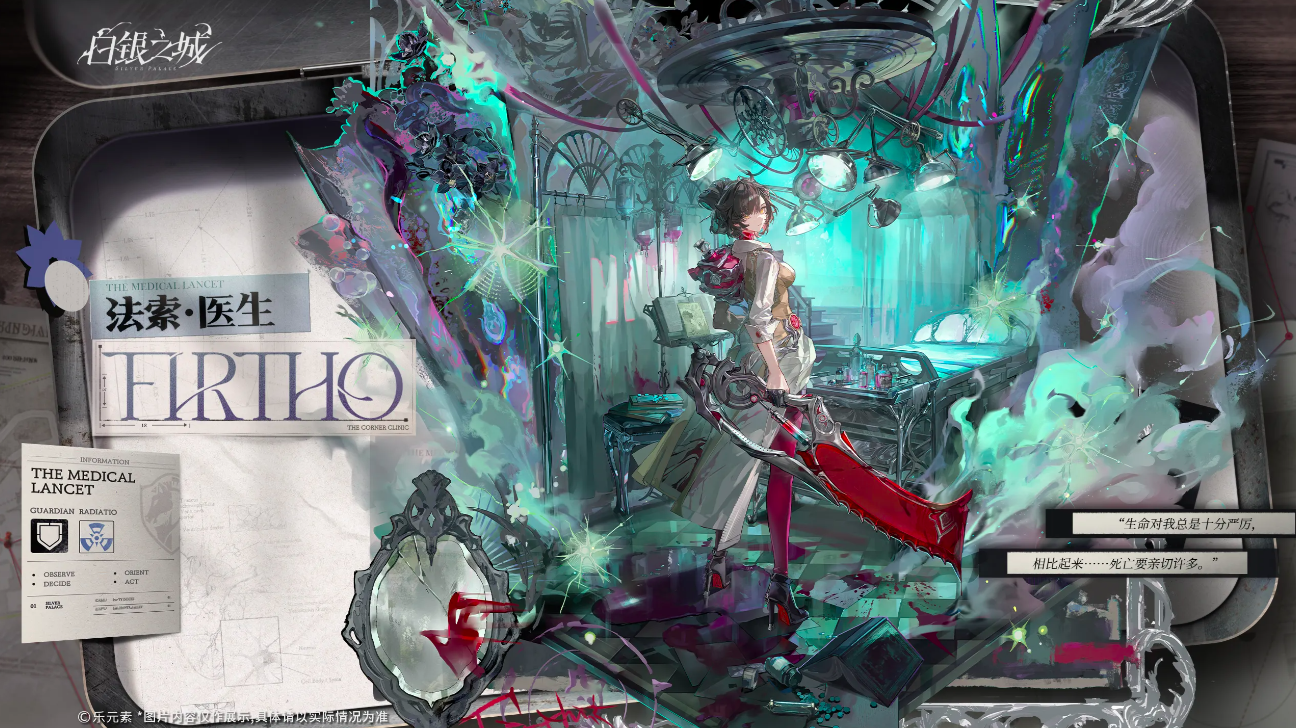 第二位是法索医生,一位兼具高治疗输出与战术支援能力的复合型角色。她常年驻守于地下诊所密室,专注前沿医学研究,所有技能设计均深度绑定医疗主题。其核心机制围绕维生装置展开——因先天性疾病需持续依赖生命维持设备,因而极度排斥怜悯,亦拒绝成为团队负担。建立信任关系的关键路径,正是在高强度战斗中委以关键输出职责。