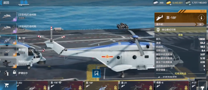 武器的配置也是一个主要的亮点,一号和二号槽位都是攻击机,因此就会具备一种和复仇女神一样的能力。自卫能力还是很不错的,会有4个直升机,一轮鱼雷就可以解决绝大部分的潜艇。